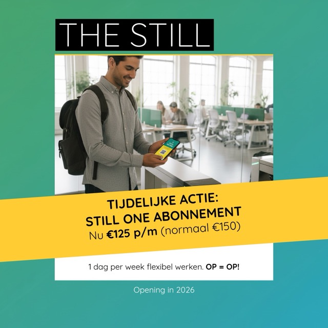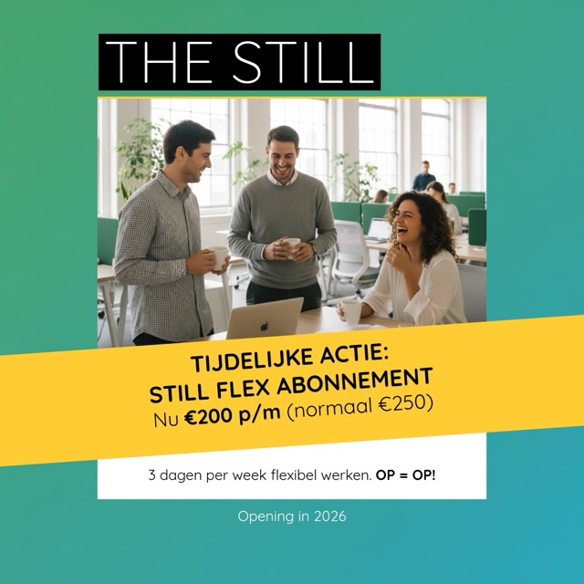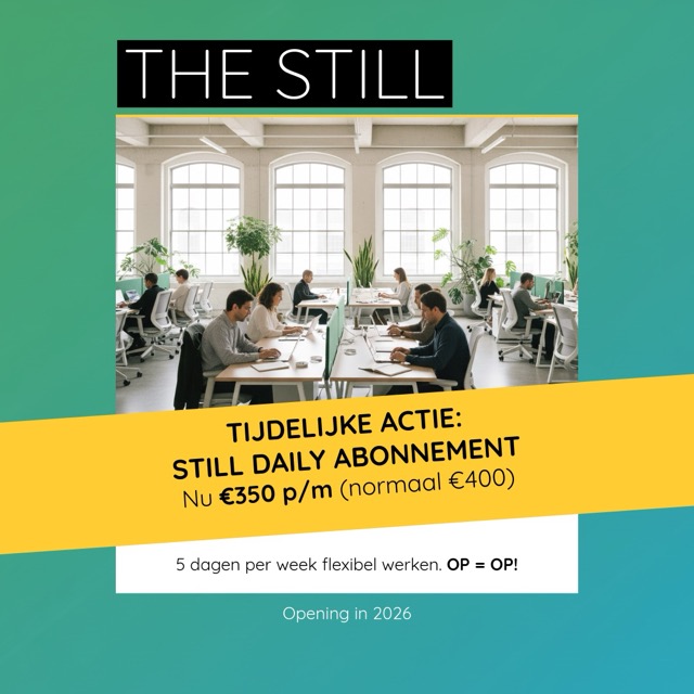 The Still biedt een inspirerende moderne omgeving voor ondernemers, zzp'ers, (hybride) werknemers en bedrijven. Met onze flexibele werkplekken, bureau's en vergaderruimtes creëren we een dynamische co-working hub waar creativiteit en samenwerking centraal staan.